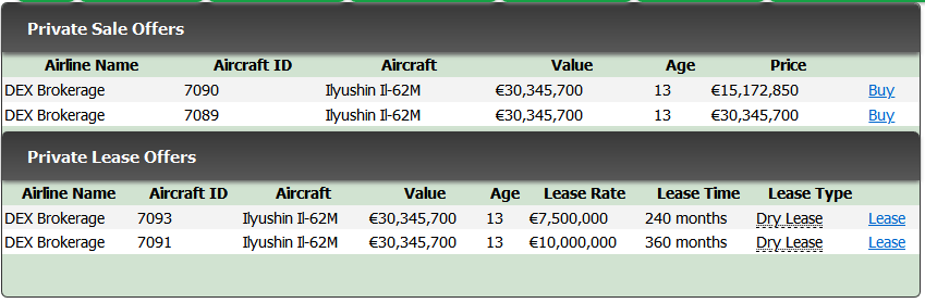 This section only shows aircraft that are offered to your airline only (private sale/lease).