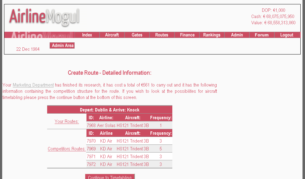 The game developed further in line with developer's skills. A Finance page was added, allowing players to see how much money they were making every month. This addition was coupled with a cash flow log (Operations Dept) for a complete itemized breakdown of costs and transactions of each airline. The cash flow logs were the start of a revamp of most pages on the website, with a fresh look to the tables and improved formatting it acted like a template for the rest of the site.