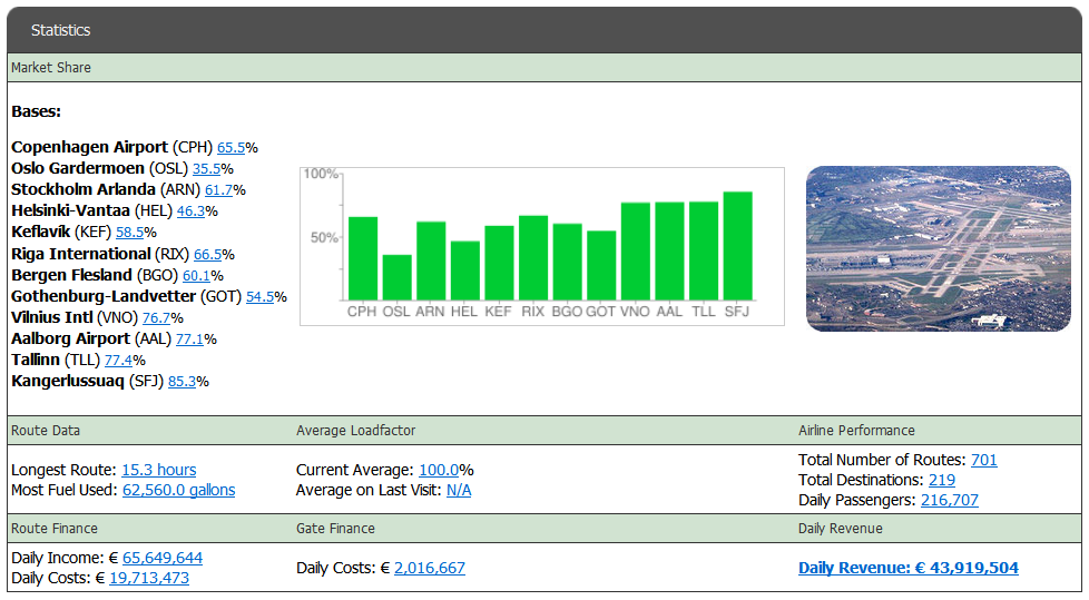 This displays your current loadfactor as well as a comparison of your airline's loadfactor when you logged in last. Clicking on either link will take you to the View Routes page.