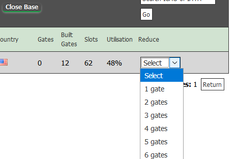 Once that has been done, you can find the focus city you want to close by clicking on the Close Base button on the View Gates or Rent Gates page.