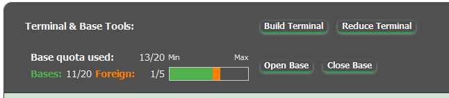 • While a terminal can only be built at one of your bases, you can keep the terminal after you have closed that base. It is not possible to extend the terminal, but it is, however, possible to rent new gates.