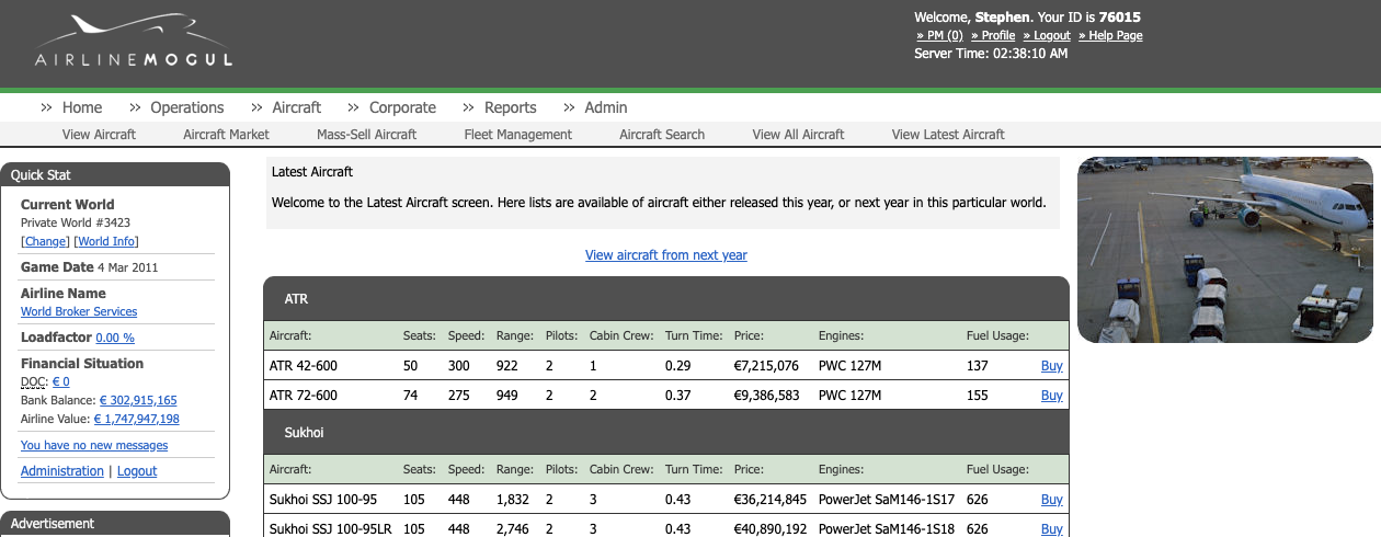 To see what aircraft will be released in the following year, click on the "View aircraft from next year" link. Note: you cannot purchase any of these planes until 1 January of the next game year.
